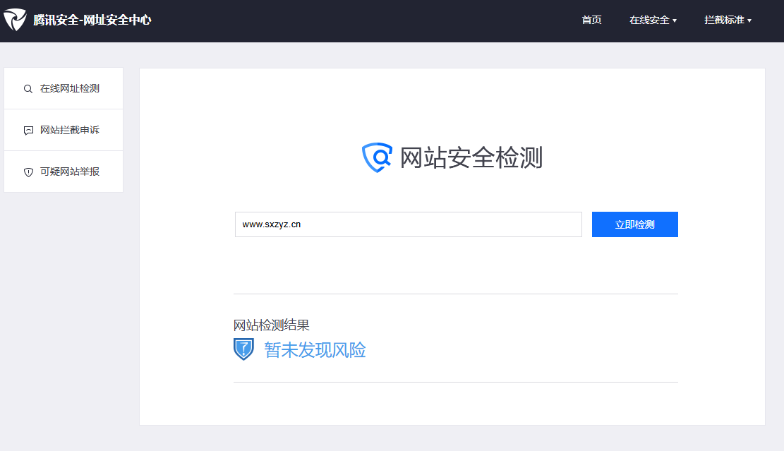 腾讯安全网址安全中心检测无风险