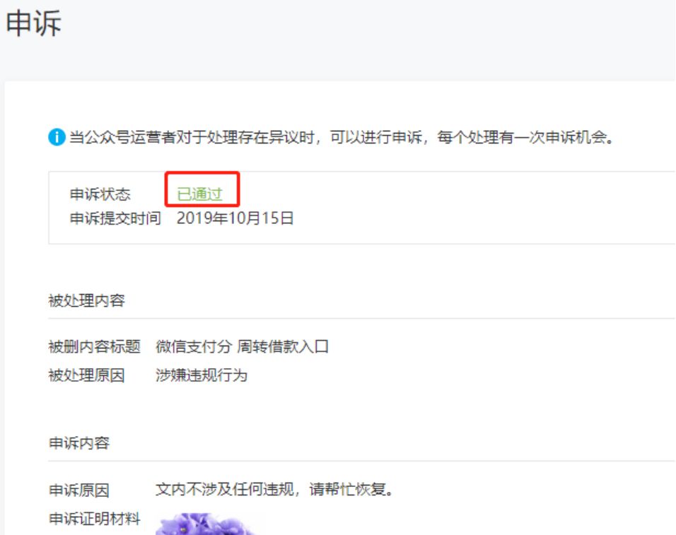 (2)7个工作日内可收到审核结果通知。可通过对应站内信入口查看申诉结果,申诉状态显示为“已通过”后即可恢复相关文章。