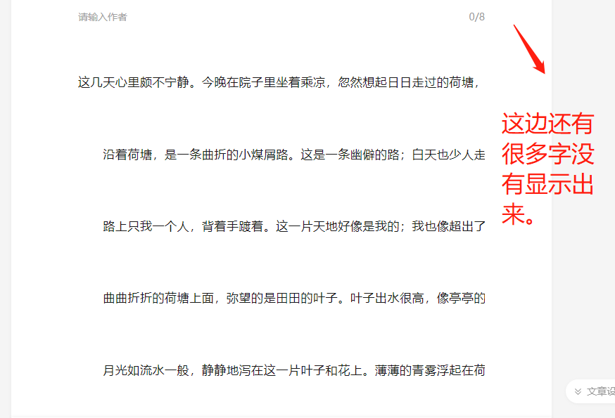 怎么回事呢?同样的问题。手动换行都改不过来。后台到底怎么了啊!!!!编辑的时候看起来一切正常,后面预览的时候文字都不会自动换行了,都被顶出去看不到了。
