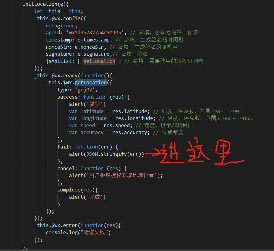 微信公众号引用js-sdk 中的调getLocation获取地理位置一直进fail,安卓真机和苹果真机都是一样,分享相关api能成功,只有这个getLocation一直失败