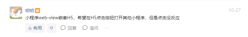 小程序web-view嵌套H5,希望在H5点击按钮打开其他小程序,但是点击没反应