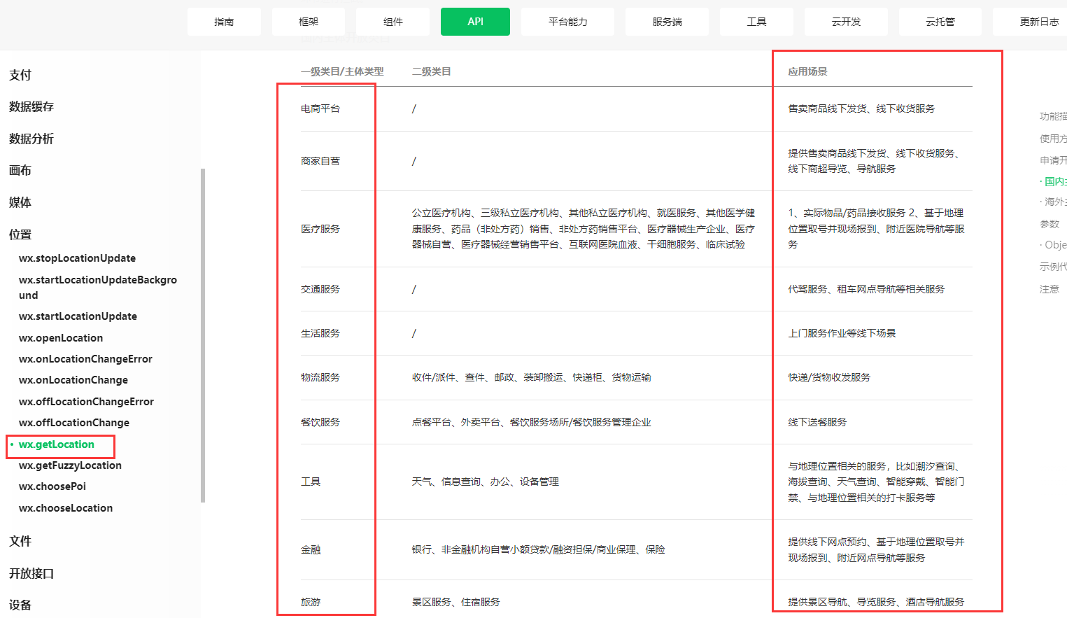 不止要申请对应的服务类目,还要提供对应应用场景的申请理由与小程序实现应用场景的页面截图或者视频,文档:https://developers.weixin.qq.com/miniprogram/dev/api/location/wx.getLocation.html