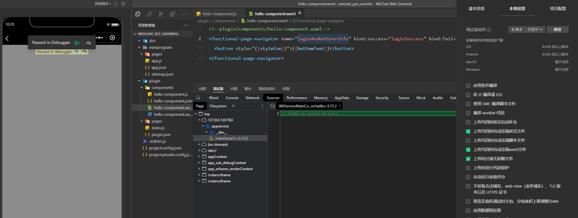 用3.15.2的基础库运行小程序插件跳转用户信息功能页面会出现一个关不了的debug呀,换成3.15.1的基础库就想能正常使用功能