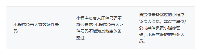 小程序负责人证件号码就一个,负责人就一个,又为另一个小程序备案过,怎么解决?