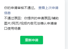 你好,核实到小程序申请wx.getLocation接口审核不通过,根据提交的申请信息可知申请该接口是用于【用户创建收货地址】,不符合wx.getLocation接口使用场景开放范畴。建议使用wx.chooseLocation或wx.choosePoi实现上述场景。可参考相关案例解析:https://developers.weixin.qq.com/community/develop/doc/000646718d40a08a65ed1e2175bc09