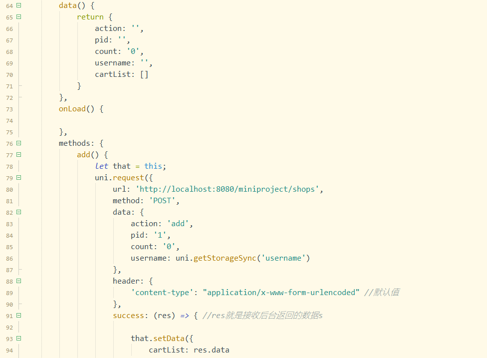 success: (res) => { //res就是接收后台返回的数据s