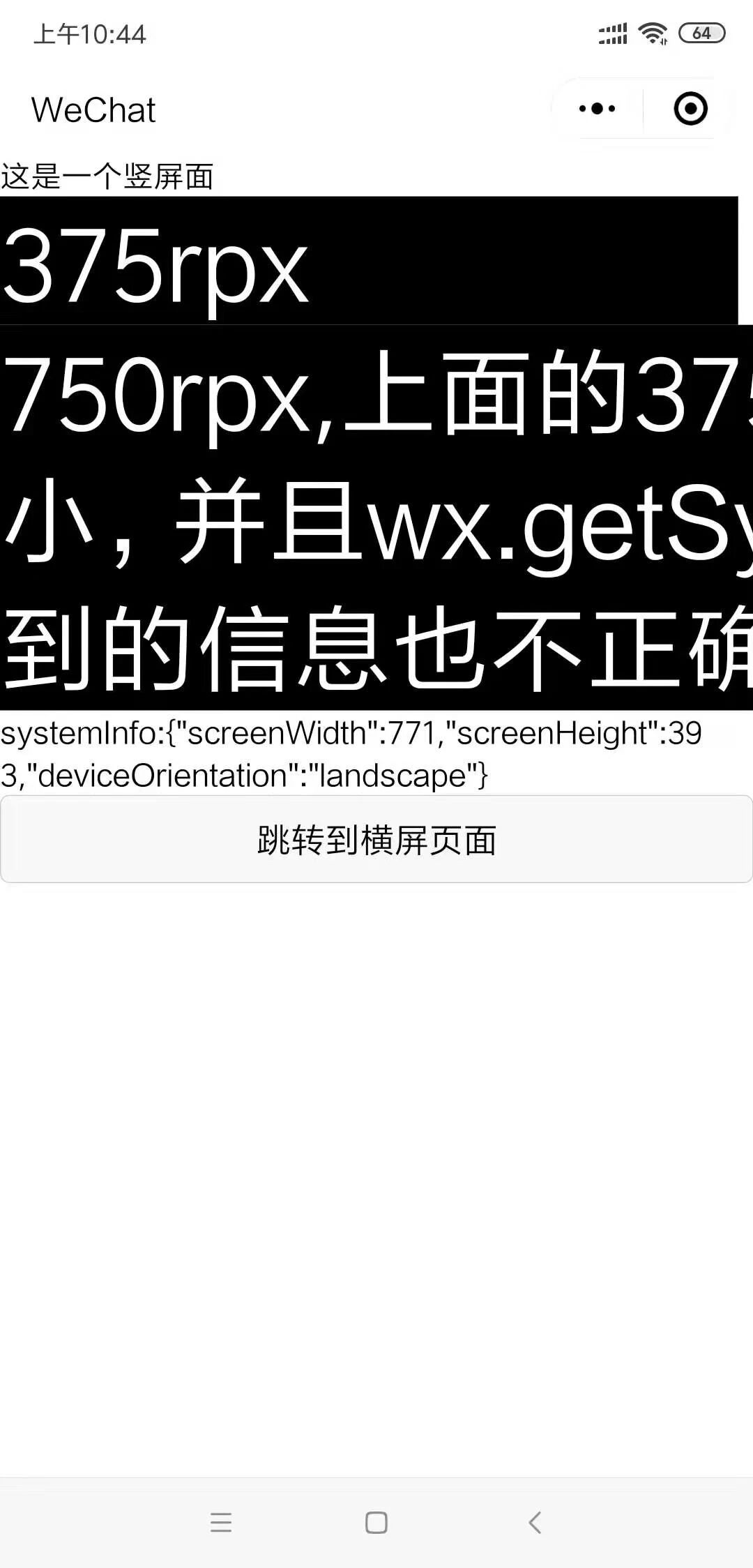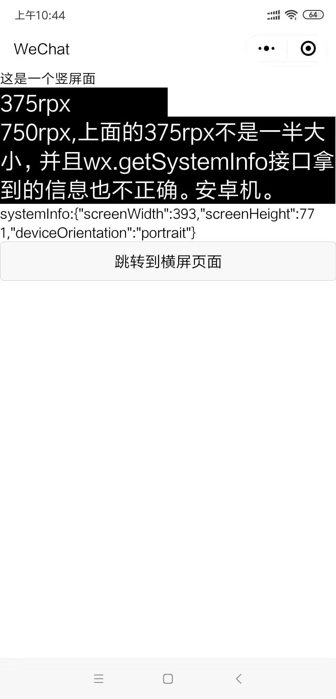 3.按手机返回键返回上一页。发现页面显示异常。并且getSystemInfo接口拿到的参数也变成了横屏的参数。
