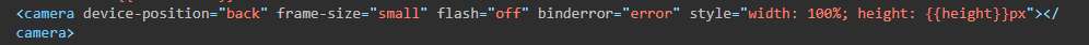 <cu-custom bgColor="bg-gradual-pink" isBack="{{true}}" bgColor="bg-cyan"> <view slot="backText">返回</view> <view slot="content">扫码绑定代理商</view> </cu-custom> <camera mode="scanCode" binderror="error" bindscancode='takeCode' style="width: 100%; height: 300px;"></camera>