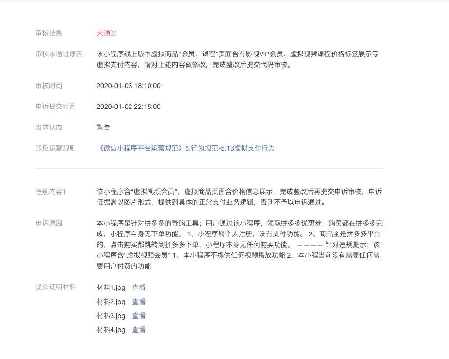 由于申诉入口已关闭,并且小程序无需更新。所以在此发帖,申请对上述违规再次做审核处理。
