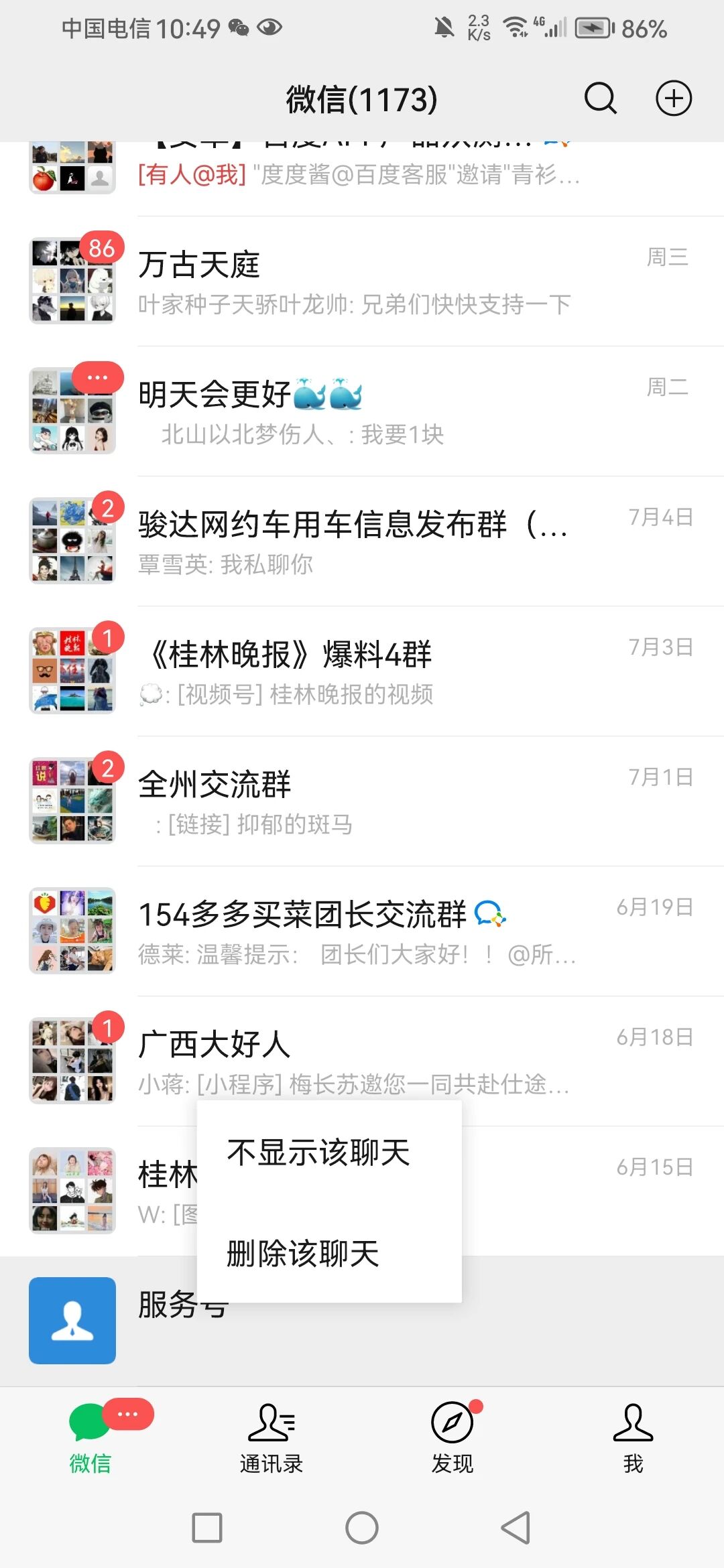 微信服务号折叠太难用了,我的这个服务号折叠在最下面,而且还没有设置个置顶服务号,用户体验非常差,用户强烈要求把服务号消息移出去,像原来那样展示在微信的主聊天列表里面。 微信开发团队可以设置一个开关选项,让用户自行选择是否将服务号消息折叠或者设置个置顶服务号的选项。