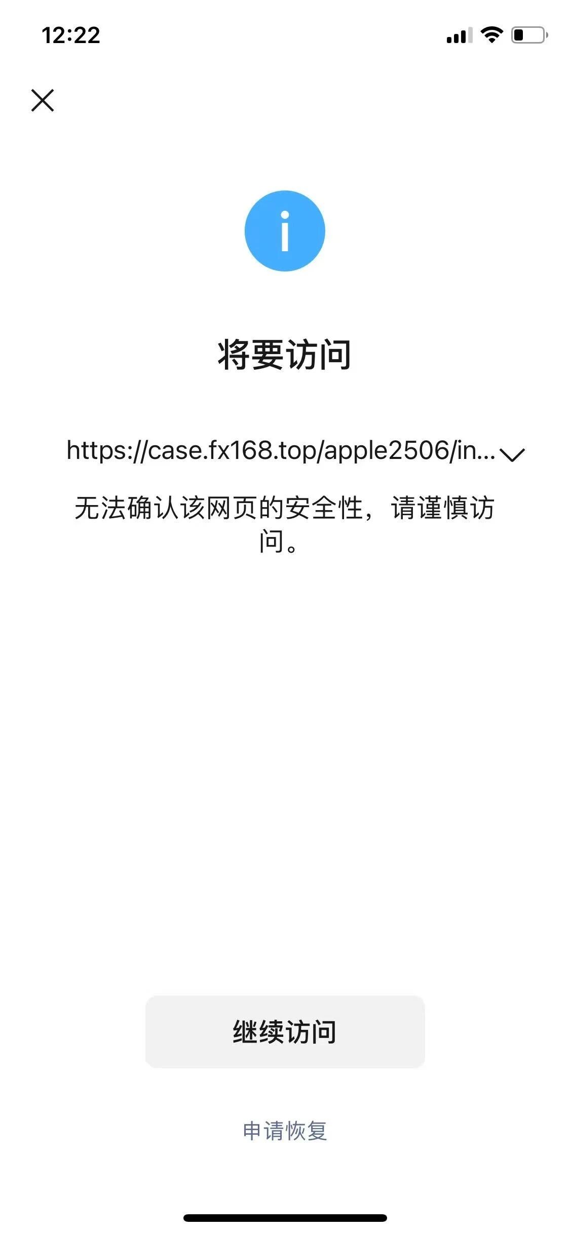 网页地址https://case.fx168.top/apple2506/index.html ,半月前弹出“无法确认该网页的安全性,请谨慎访问。”多次申请恢复,依然还是被封,也没有任何反馈给我,域名备案正常,证书正常,内容安全合规,烦请帮我看看问题出在哪里?