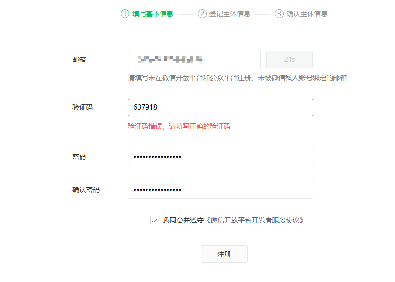 微信开放平台,注册换了好多浏览器,清理了缓存,验证码正确,为什么一直提示错误?