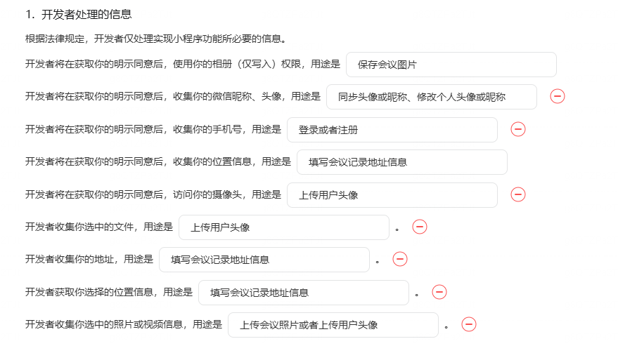 审核不通过,我需要可以指导我填写对应的隐私政策,下面是我原本提交的表单,我不知道哪里有写错,希望可以引导改正