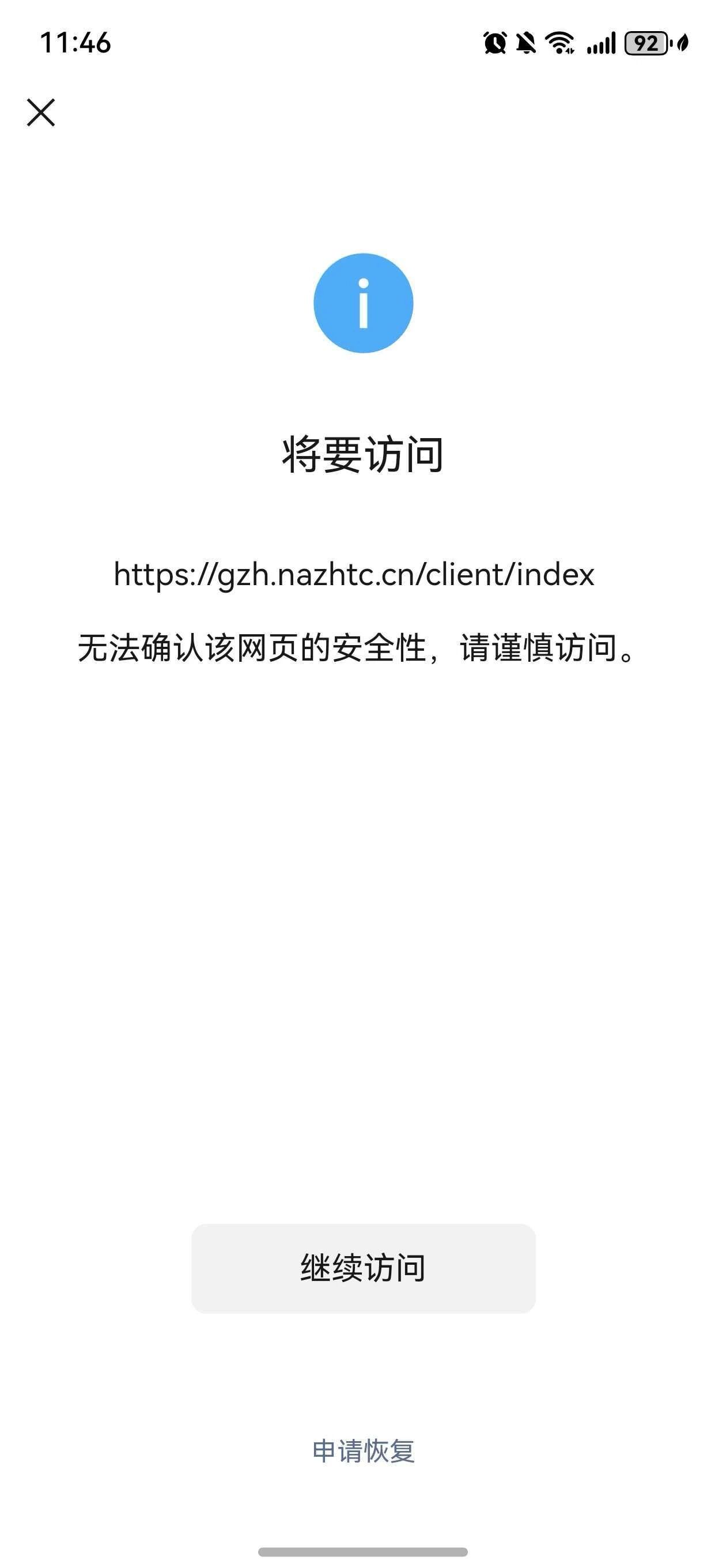 gzh.nazhtc.cn跟service.nazhtc.cn访问提示“无法确认该网页的安全性”?