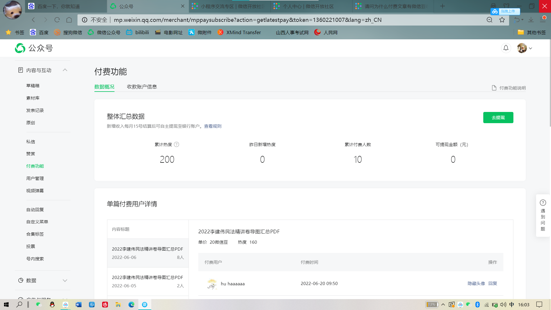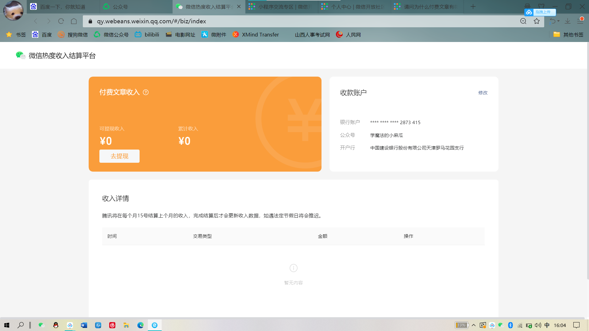 今年刚开的个人公众号,上个月付费文章有微信豆收入,可是为什么“付费文章收入”还是显示0呢?