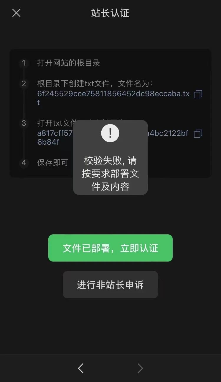 已按照要求部署文件,并且可以访问到内容,但是点击立即认证一直提示校验失败