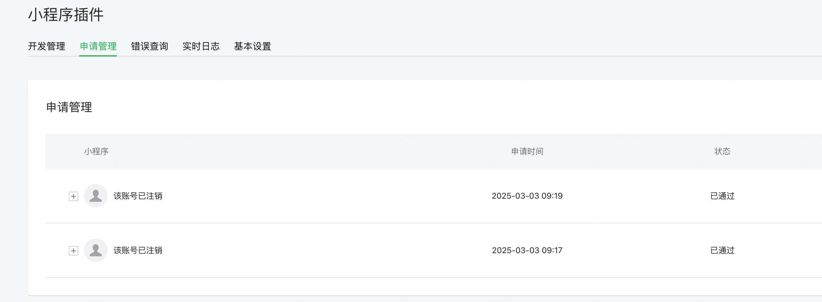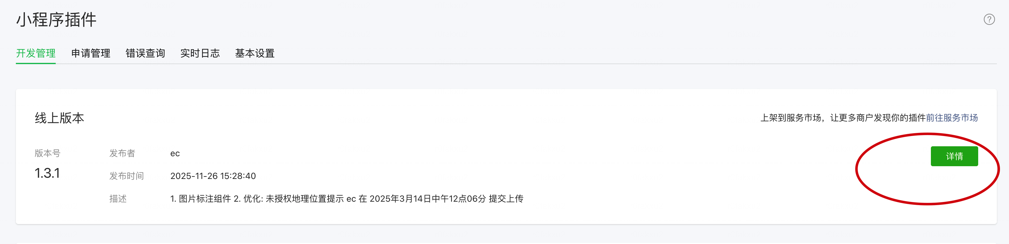 2、接着根据搜索出来的解决方案,前去「小程序插件」进行授权的关闭,所有的授权都关掉了