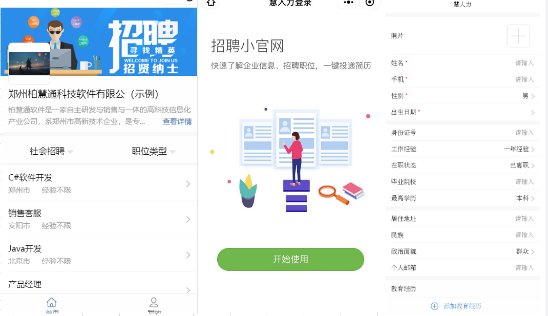 使用场景说明,慧人力招聘小程序为我们人力SAAS应用慧人力的一个招聘管理工具,主要实现为企业提供招聘宣传一个工具.