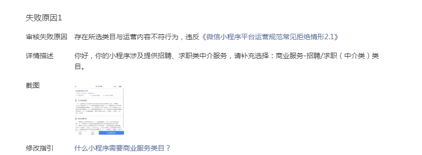3.小程序涉及提供招聘、求职类中介服务,需要补充选择:商业服务-招聘/求职(中介类)类目