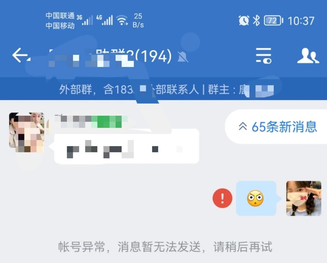 企业微信无法在群里中发消息,提示:账号异常,消息暂无法发送;该账号是群主,已经影响到工作了,希望尽快解决,账号是实名制且经过了企业认证。