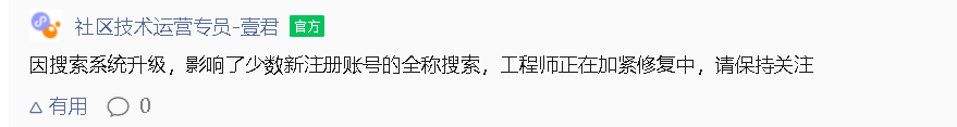 官方回复:因搜索系统升级,影响搜索,工程师正在加紧修复中,请保持关注!!