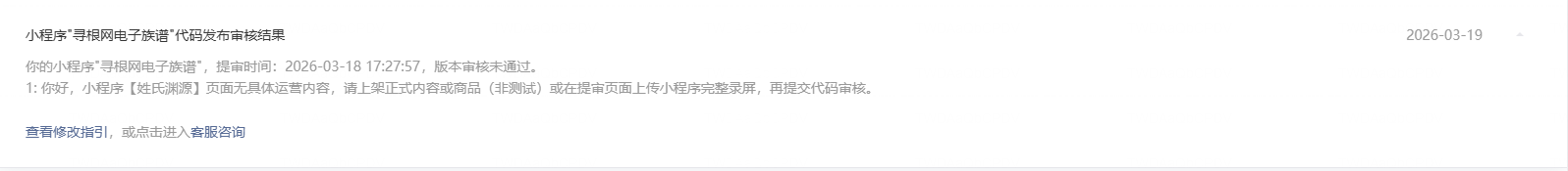 3-18 号,因资质传输问题被驳回,要求更新资质,再重新提交代码审核