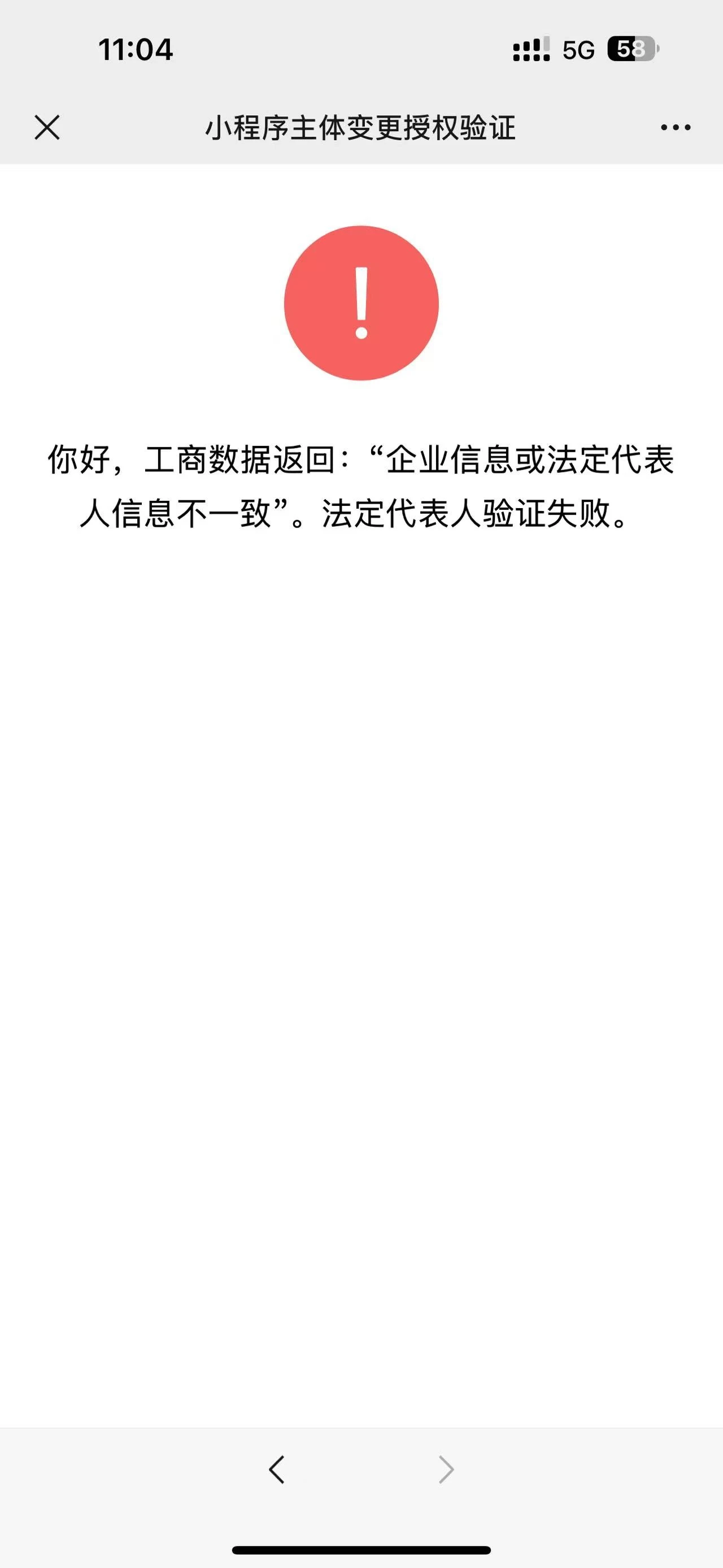 小程序变更主体时扫码新的主体公司法人信息不一致该如何解决?