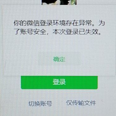 1、 你好,提示“你的微信登录环境存在异常。为了帐号安全,本次登录已失效”的问题,重新扫码登录即可,出现该提示一般是由于微信帐号被其它用户投诉导致(如:涉嫌频繁发送营销类广告骚扰信息等,请遵守微信使用规则,并规范个人行为,谢谢!) 2、 如果用户是在新设备或是新系统登录出现的情况,登录一段时间后会自动解除提示。