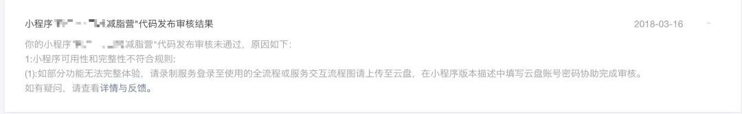 由于我们的小程序只有付费用户才能使用,因此前面两次拒绝尚可理解,第三次被拒绝是由于受微信登录的安全机制所限,因此也是我们自己的失误。可最后一次,我们已经提供了白名单用户账号密码(换句话说,不需要登录微信,打开即用),能够体验完整的功能,可依然无法通过审核,我们已经不知道还能做些什么了?