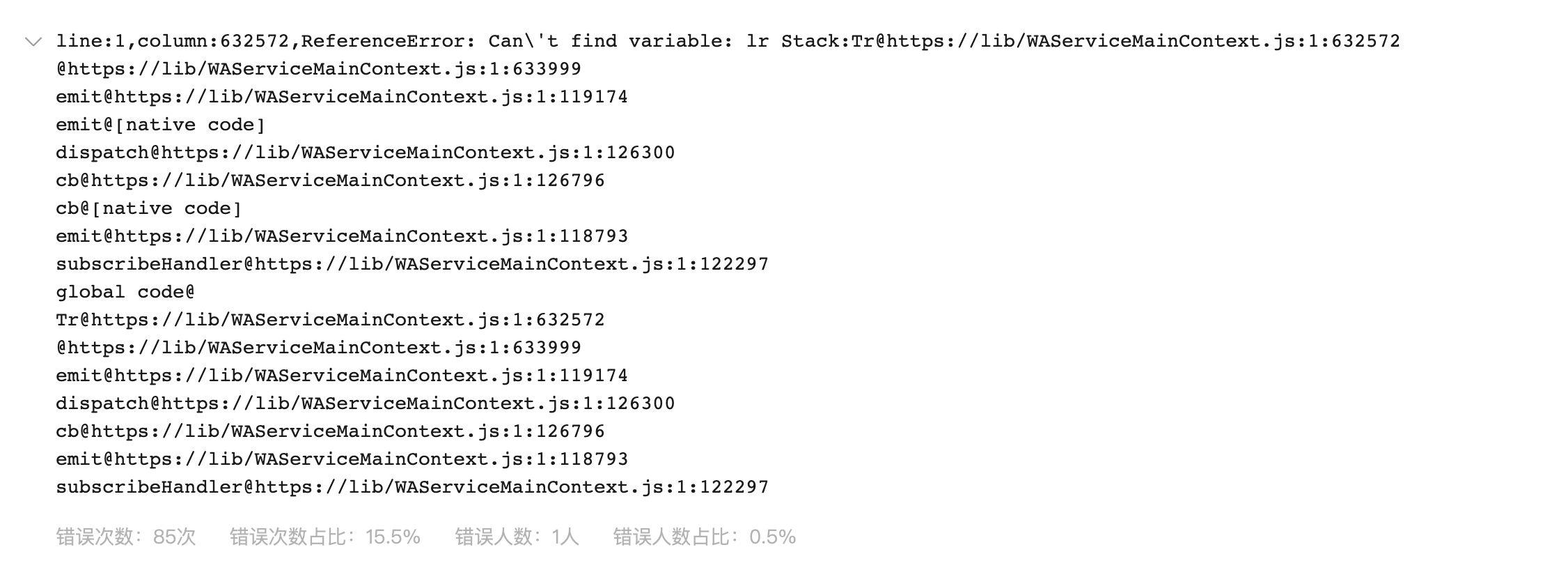代码没有动,昨天报错量突然增加,sourcemap也没有WAServiceMainContext.js,请问如何定位报错位置呢,是否是基础库的问题