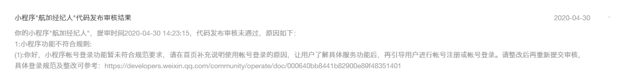 你好,经核实,该小程序当前登录方式是符合要求的,最新提审版本已通过。后续代码审核相关问题,可以登陆“小程序服务商助手” 小程序的客服专区联系人工客服进行反馈,客服值班时间为工作日9:00-21:00