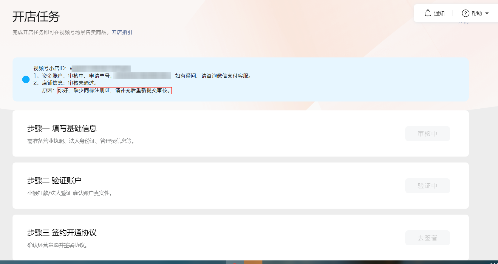 你好,资金账户和店铺信息均审核完毕才会出现修改页面,待审核完毕再根据系统驳回原因修改重新提交审核,谢谢。