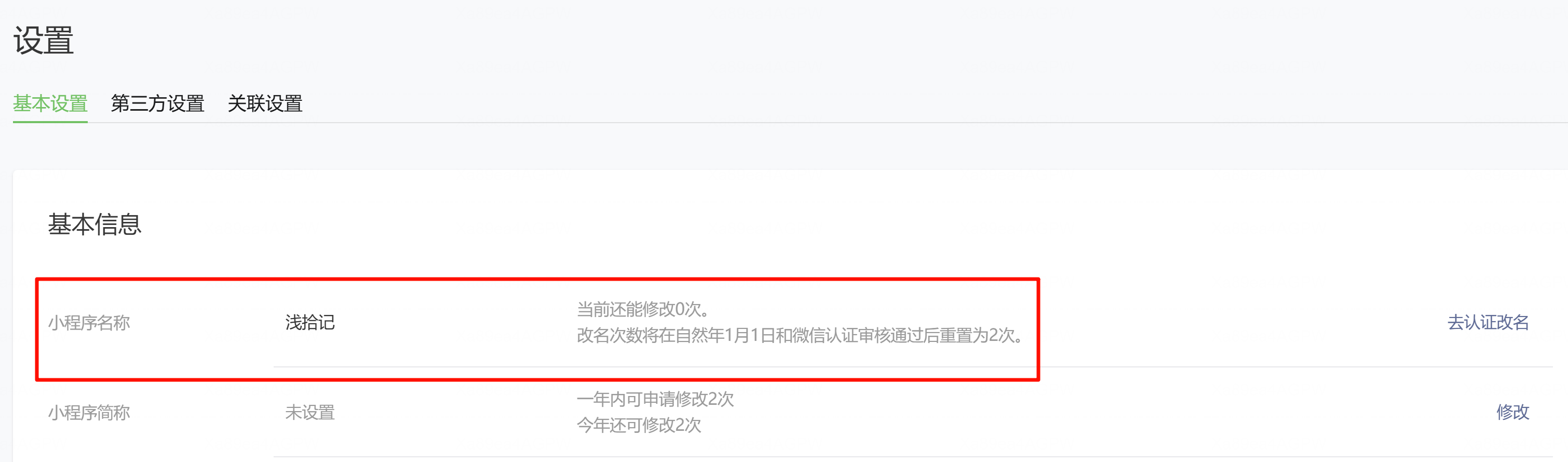 大家好,我是新手,刚开始做小程序时随便取了个名字,现在想改,但怎么都找不到改名入口。问了腾讯的AI问答,说可以通过【设置】->【基本设置】->【小程序名称】路径修改,但我翻来覆去都找不到。恳请大家帮忙解答一下。谢谢啦