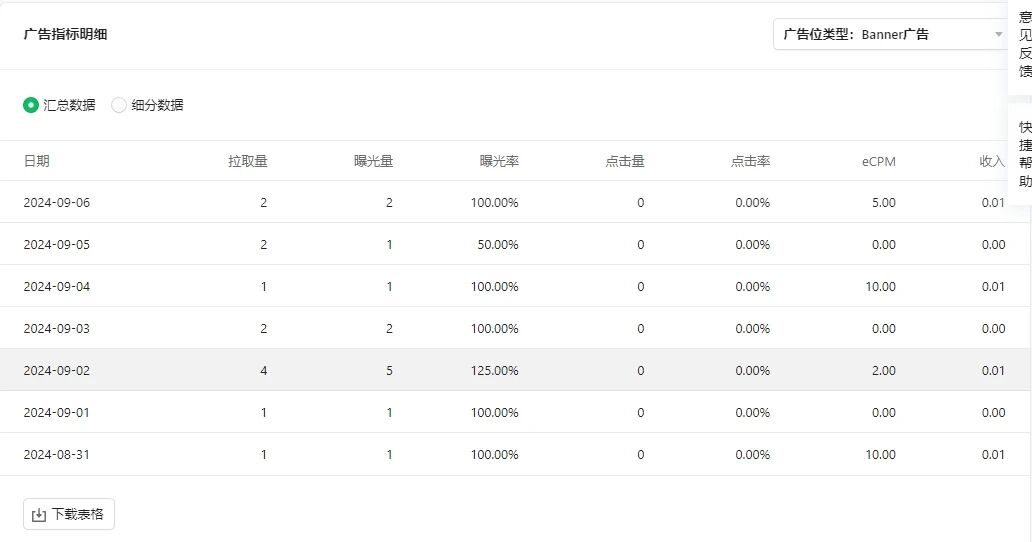 在小程序后台可以查看道广告汇总数据