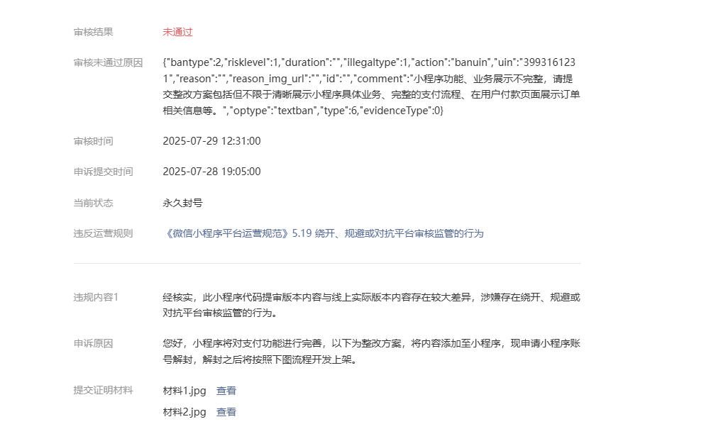 你好,经核实,申诉结果已通过站内信下发,可登录微信公众平台查看申诉结果,感谢反馈。