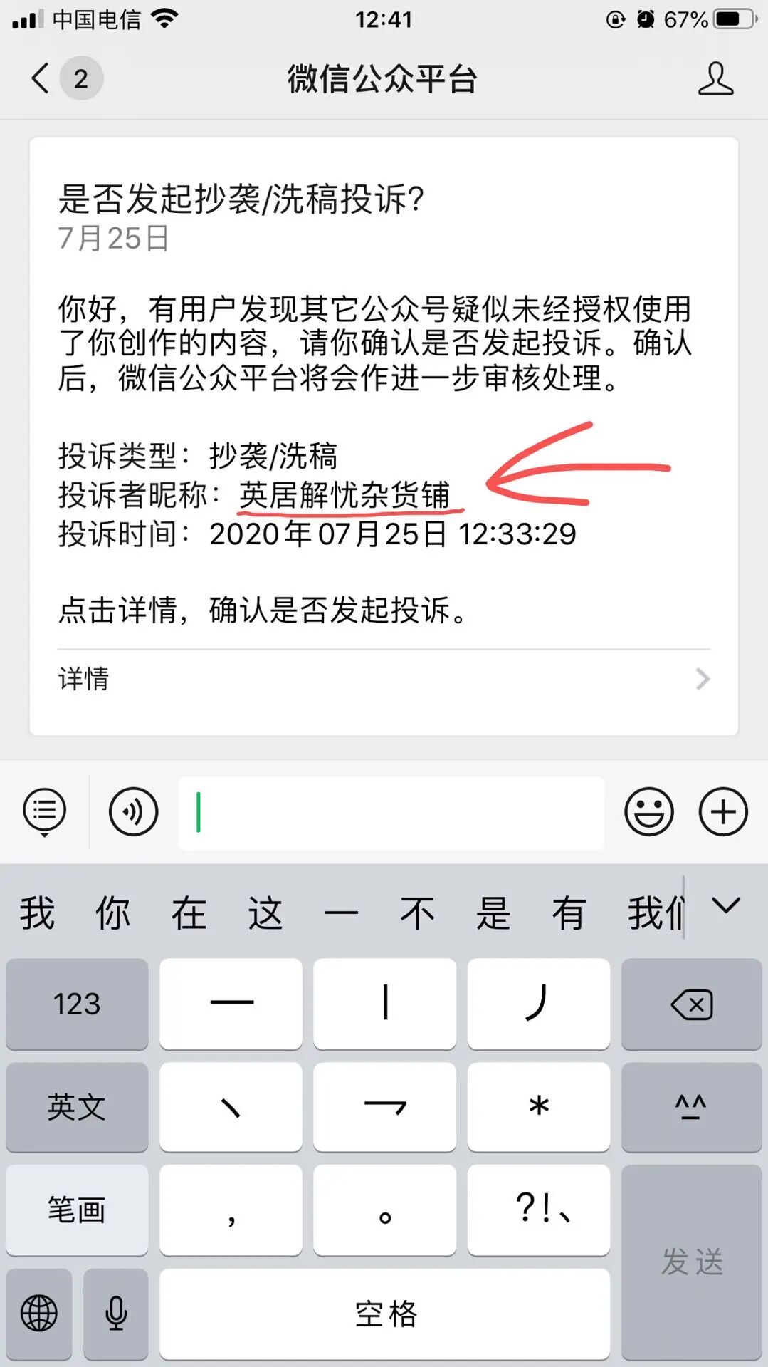 我的公众号今日雷歌,原创作品怎么近一段时间老是被人恶意投诉。第一次投诉刚恢复,就来第二次投诉,第二投诉不成功,就又来投拆第三次,第一次和第三次都是以大篇幅整合、引用第三方内容不能声明原创,第二次投诉是以未经同意用原创(这次不成功)。作品都是作者授权发布的,都是原创,就是不明白,老是申斥不成功。连连着投诉, 不是恶意,还是什么,希望查明原因。