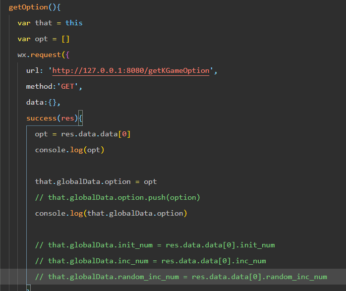 想将wx.request中success返回的值赋值给globalData中的参数,像截图这样写是undefined,用过回调函数(也是不行,提示我没有callback方法)