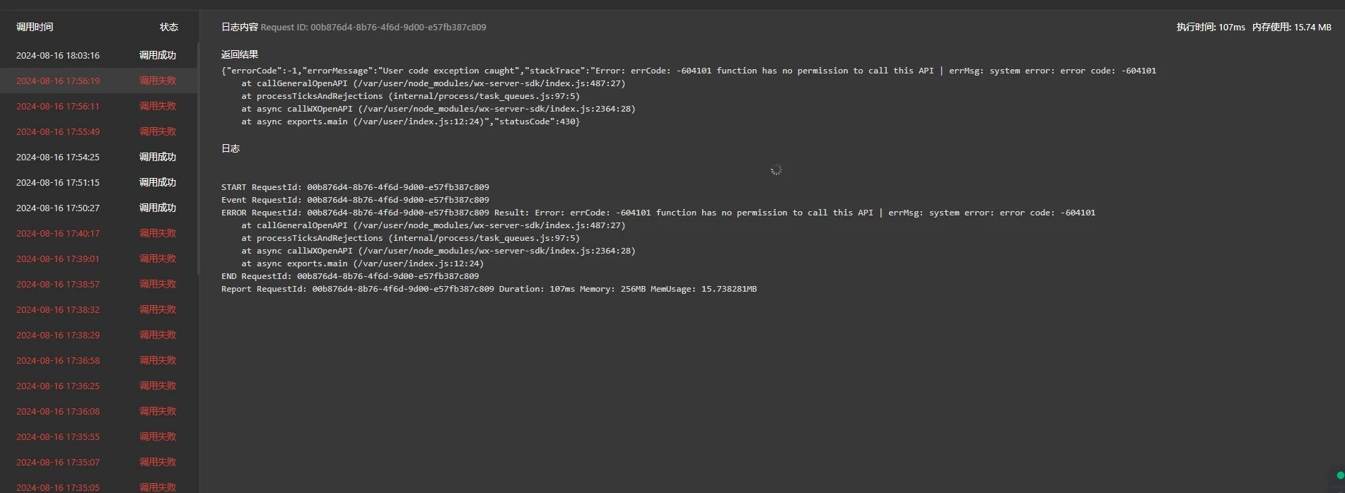 您好,请检查下是否没有配置云调用权限,可参考以下文档