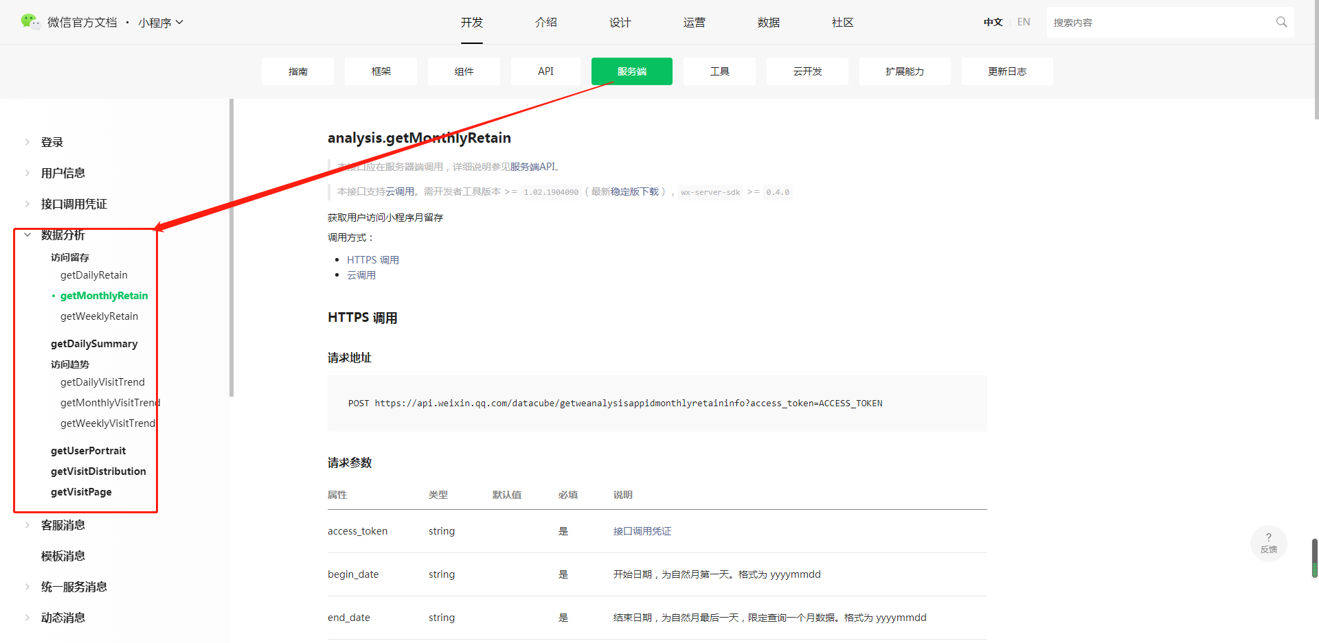 https://developers.weixin.qq.com/miniprogram/dev/api-backend/open-api/data-analysis/visit-retain/analysis.getMonthlyRetain.html