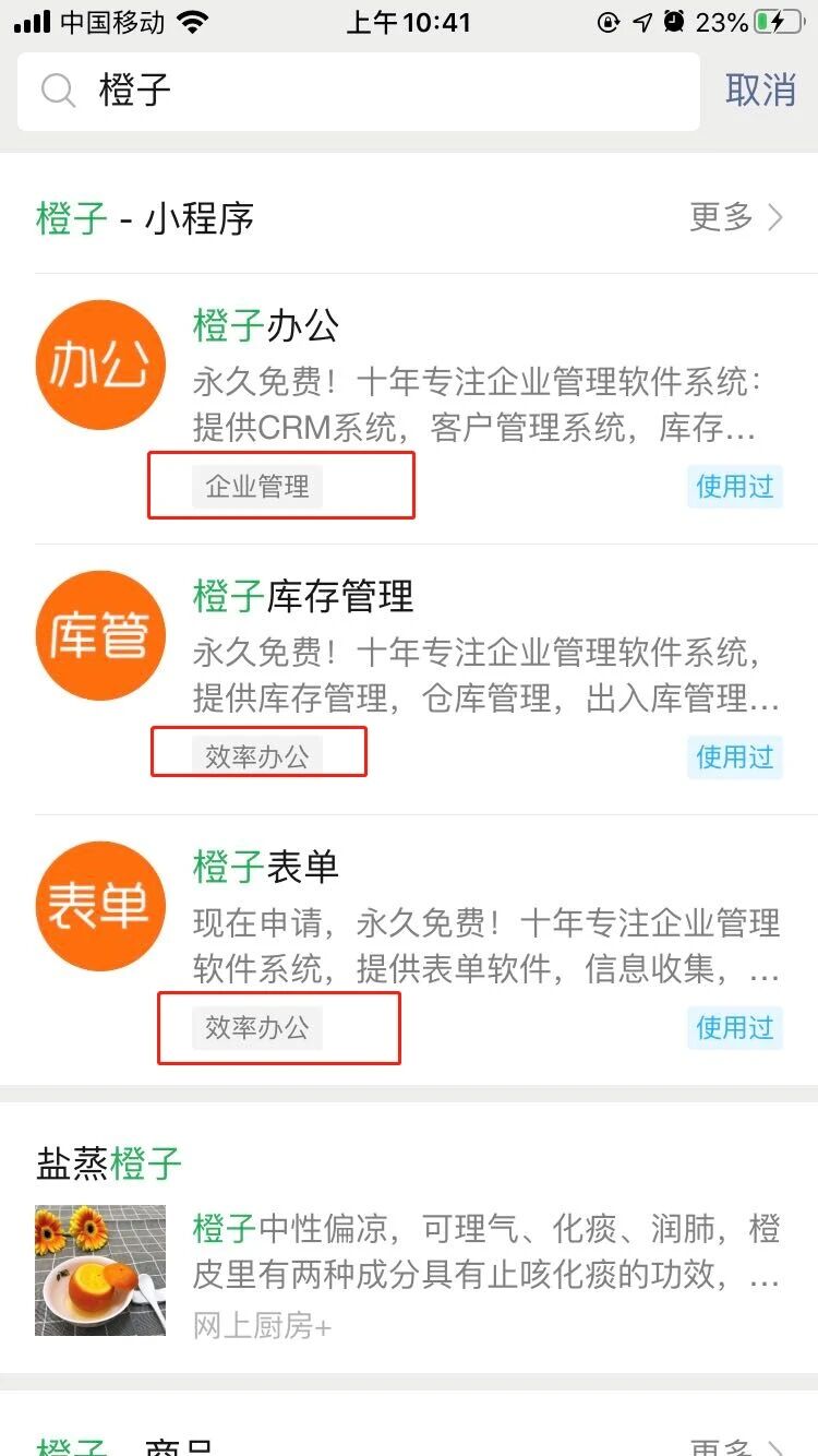 请问怎么才能将橙子办公的搜索结果显示的类目,从企业管理改到【效率办公】,以改变目前无法搜索的局面。