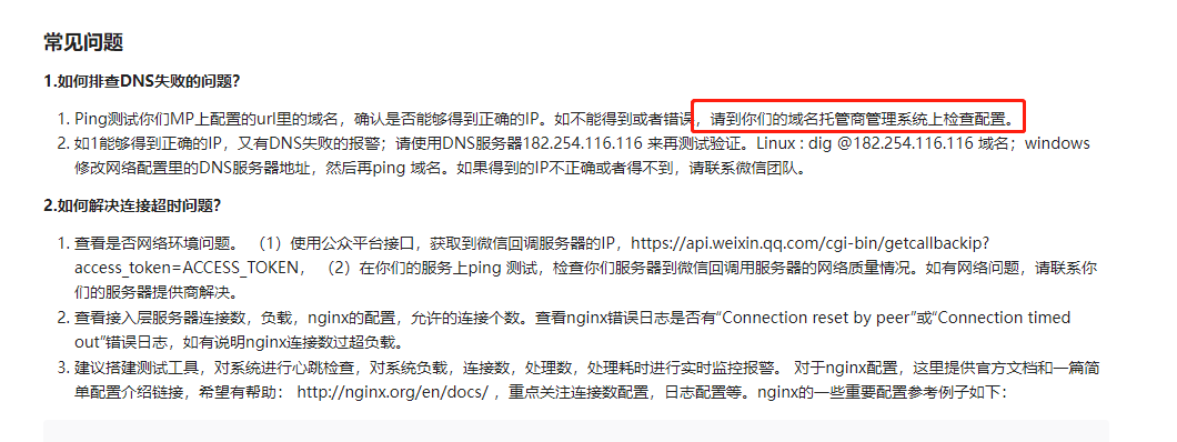 内容: 微信服务器向公众号推送消息或事件时,解析DNS时发现是无效域名