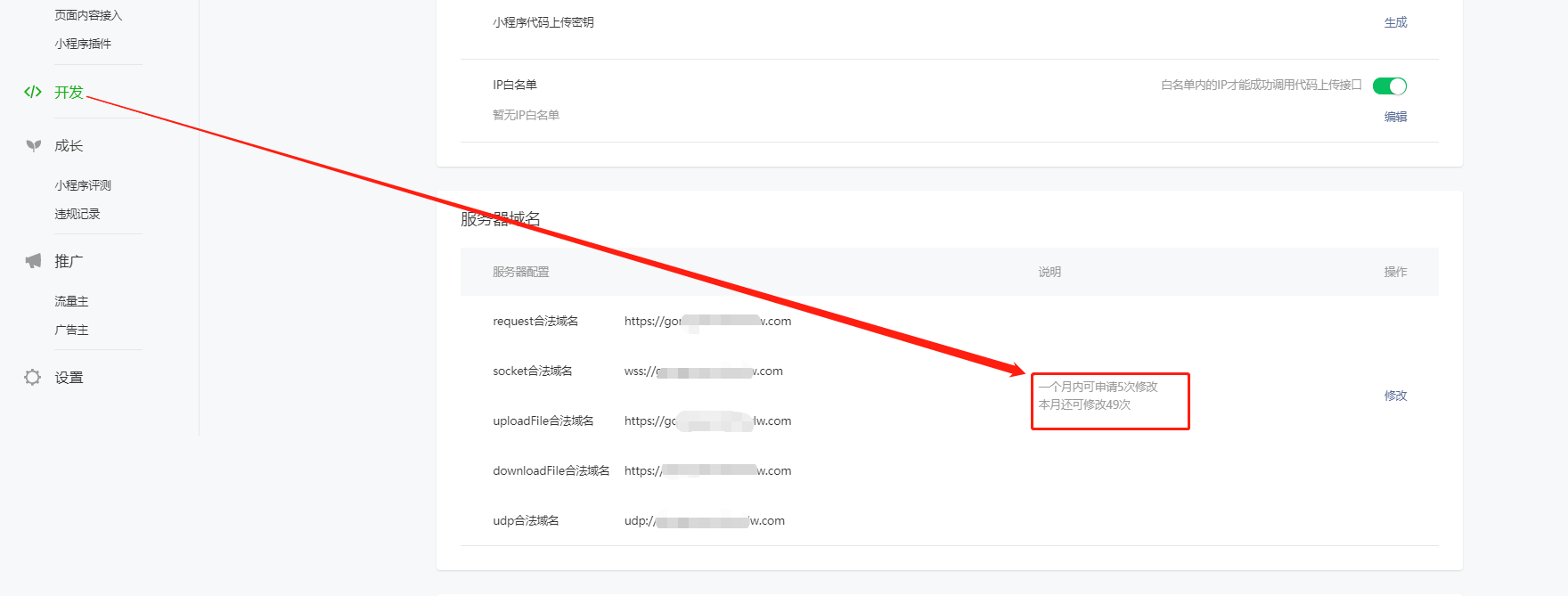 首次配置服务器域名,提交之后说明数字错误。
