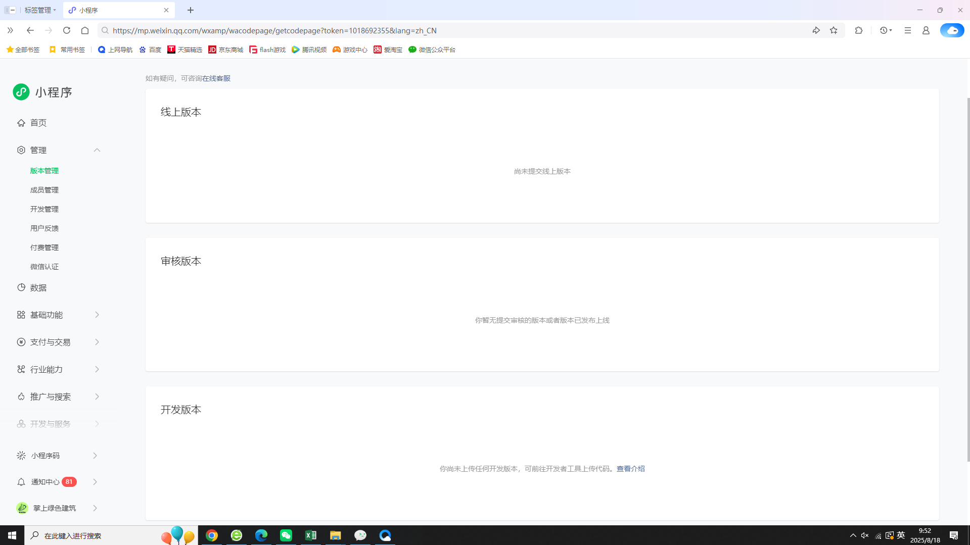 可以看到这个工具已经上传成功 但是这边微信小程序后台的没有代码版本 就这个wxff5774167f29584e账号 有问题 其他账号可以正常上传代码