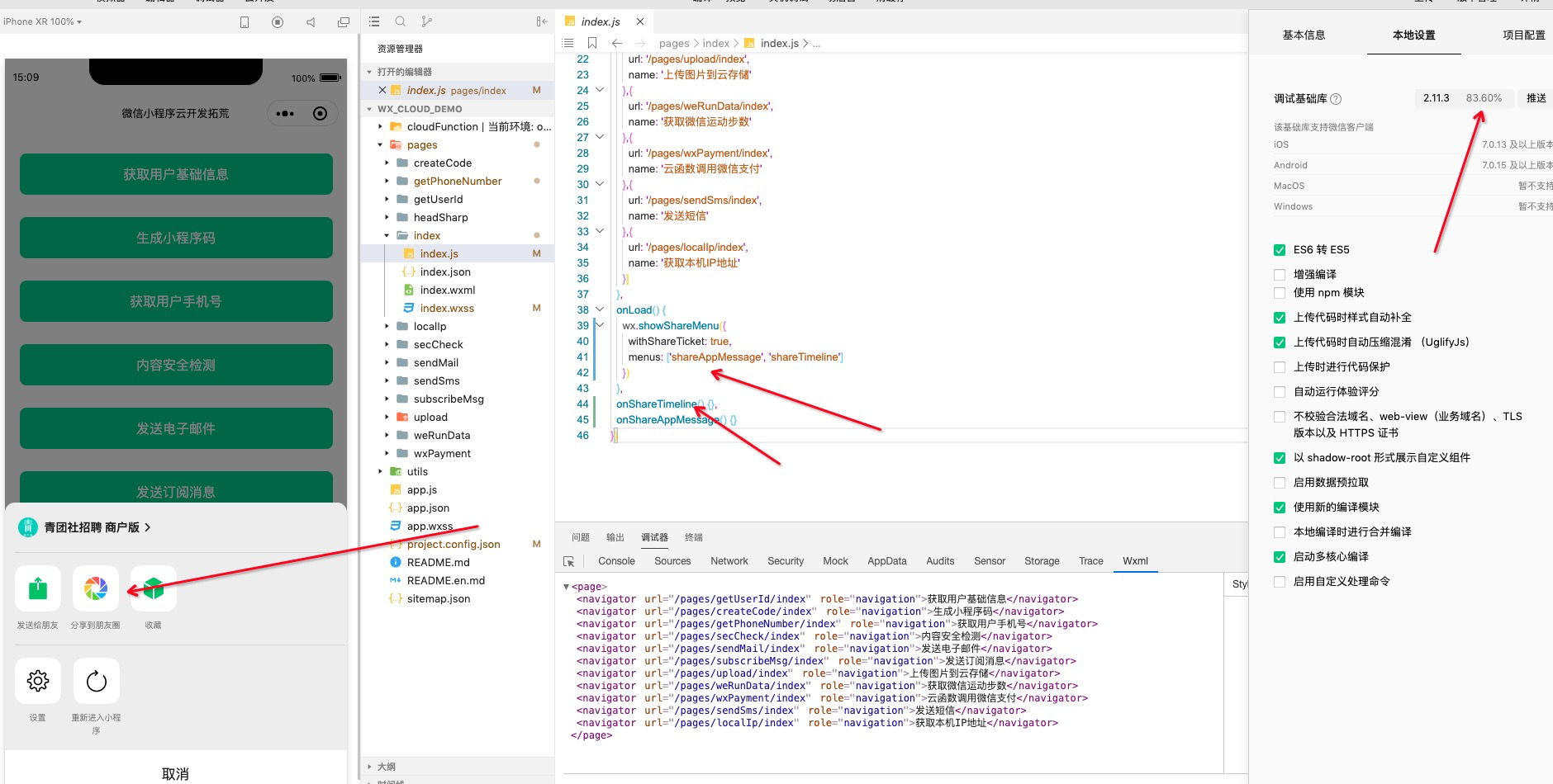 3.开发中和小程序的基础库必须是2.11.3版本,其它版本无用;