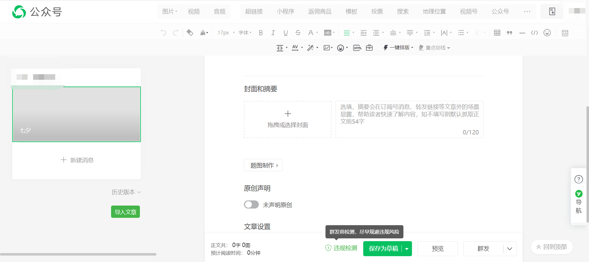 从上个月开始公众号后台推送偶尔开始出现封面上传无法显示的问题,今天清空浏览器缓存试了一下,结果全部图片都无法显示了,重新上传依旧是灰色,换浏览器、换设备登录都不能解决问题。