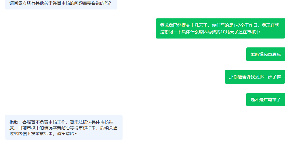 我大概3.20号提审的,然后过了差不多8-9天没反应问了人工在线服务提醒我审核中,我就又等了几天,然后问还是这样说在审核中,但是明明写的是1-7天,这种情况我该怎么办呢?有没有内部工作人员给个答复,我不可能一直这样等把