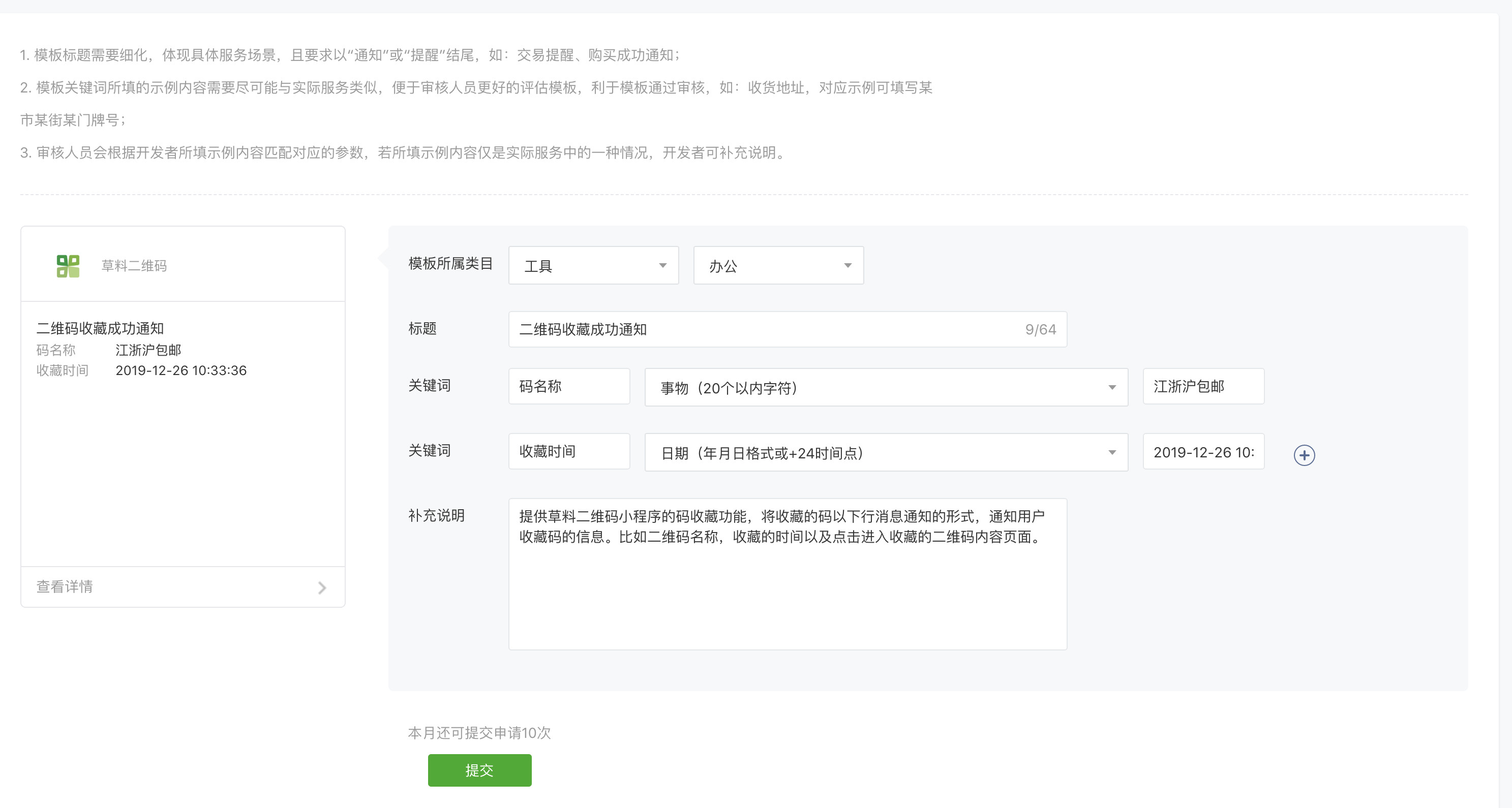 这个是上周我们提审的模版,今天反馈给我审核不通过,原因是我们在【收藏时间】关键词没有使用【日期】参数类型,但是我在提审时确确实实选择的是【日期】类型。。这个该怎么办?有没有官方大大回复一下这种情况要怎么样修改才能再次提审?每次提审都要3-4天,不敢在浪费机会了。。功能急着用,谢谢大佬们,帮助一下。