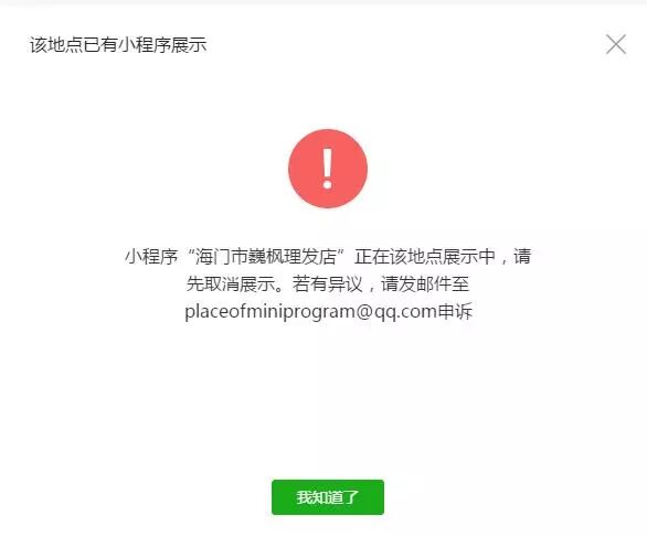 已经注册过一个小程序,但是账号密码均已丢失,所以重新申请了一个,但是原来的小程序开通了附近的搜索功能,导致现在的小程序审核已经通过但是无法展示,提示需要取消原来小程序上的展示