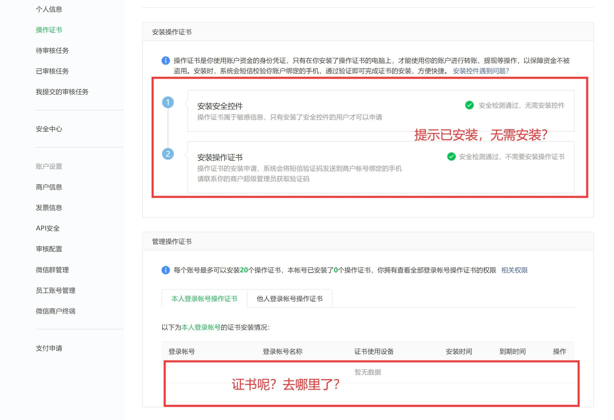 如图提示是无需安装证书的,如果有安装过,超管账户可以在管理下面查看记录