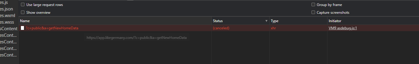 接口能请求,但耗时比较长, 在微信开发者工具中接口请求status报错canceled,是怎么回事?